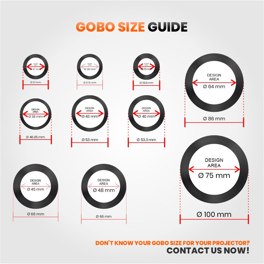We manufacture gobos in the most common industry sizes, ensuring compatibility with today’s leading projectors: