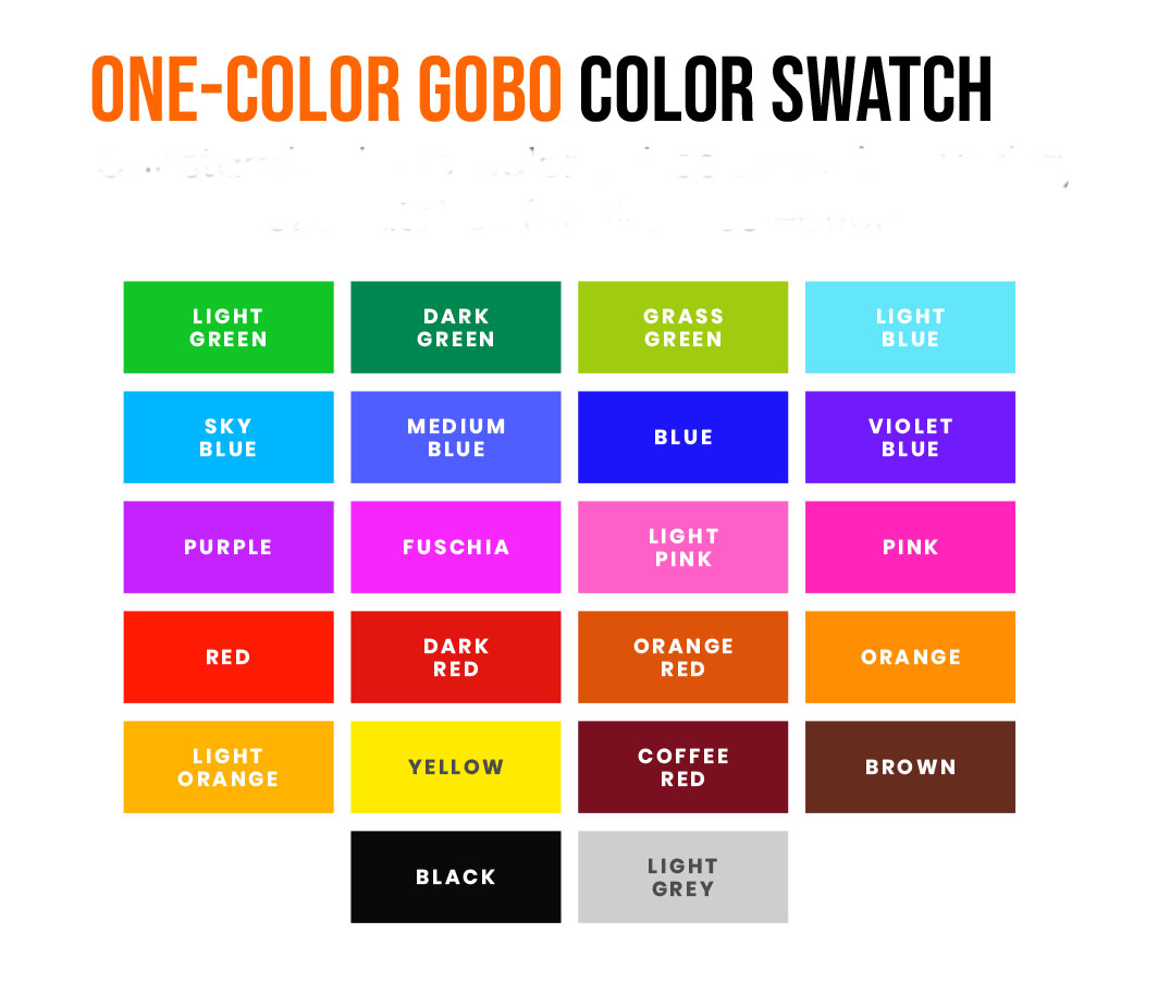 1 Color Printing - Select From Swatch - Color Matches Require Full Color Gobo Printing